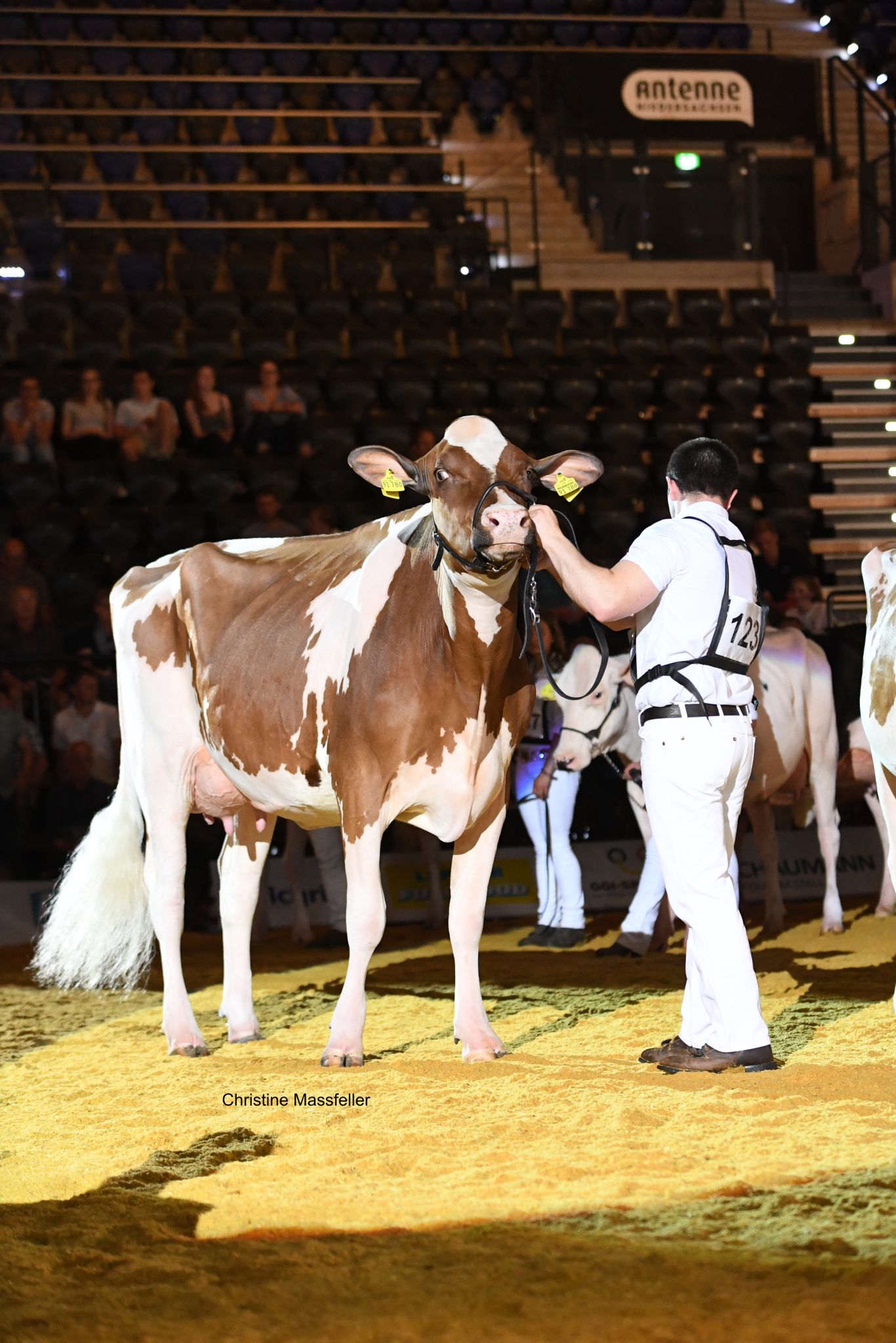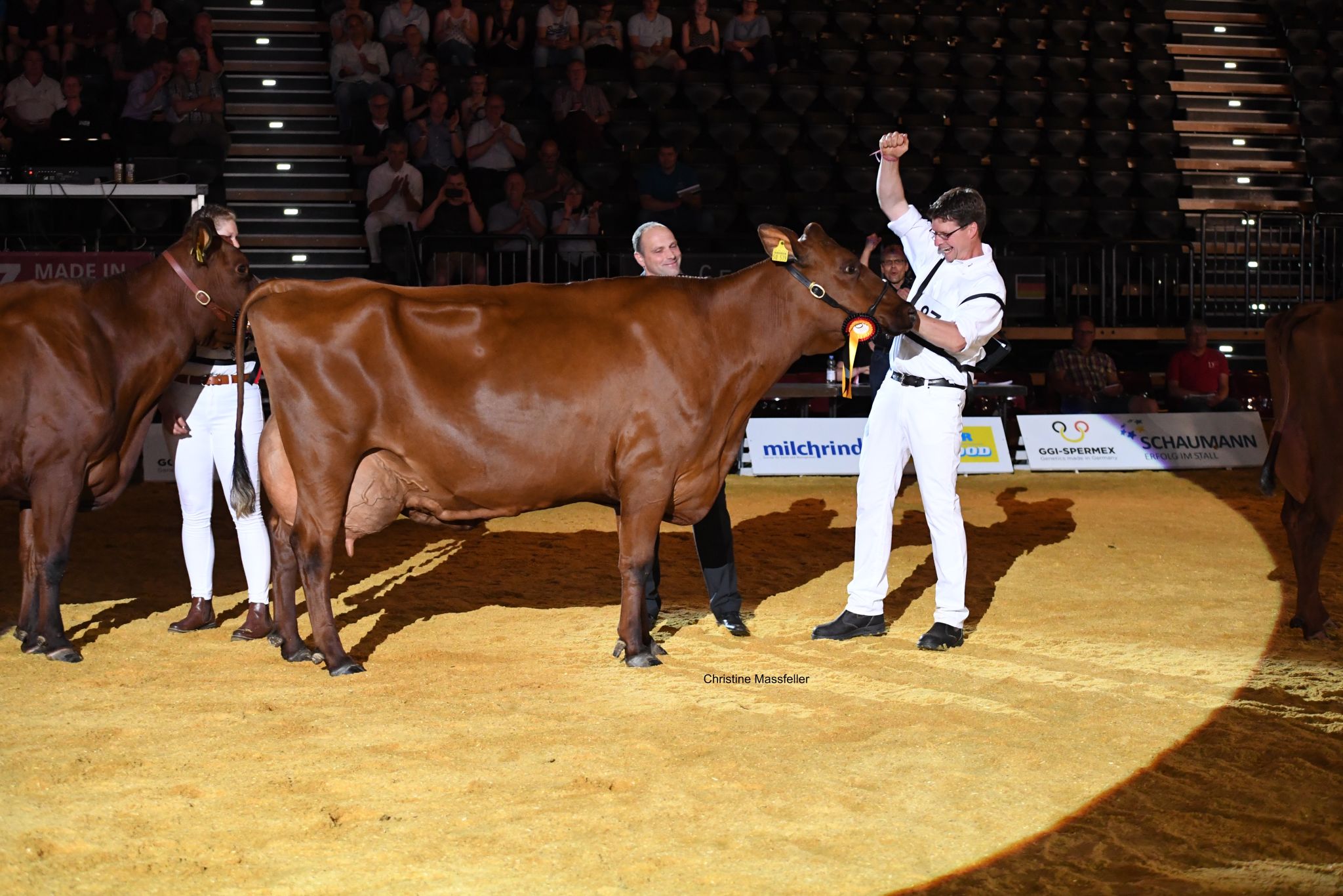 The judge Andrea Uhrig already raved in the highest tones in the class about the udder- and foundation-strong as well as milk-typical Awesome daughter Specialred (owner: Jonas Melbaum, Haselünne). The udder-strong and typey Arvis daughter NH Silky R of Matthias Nosbisch from Niederweis, Germany, had made a successful hunt and had to take some feathers off her shoulders.