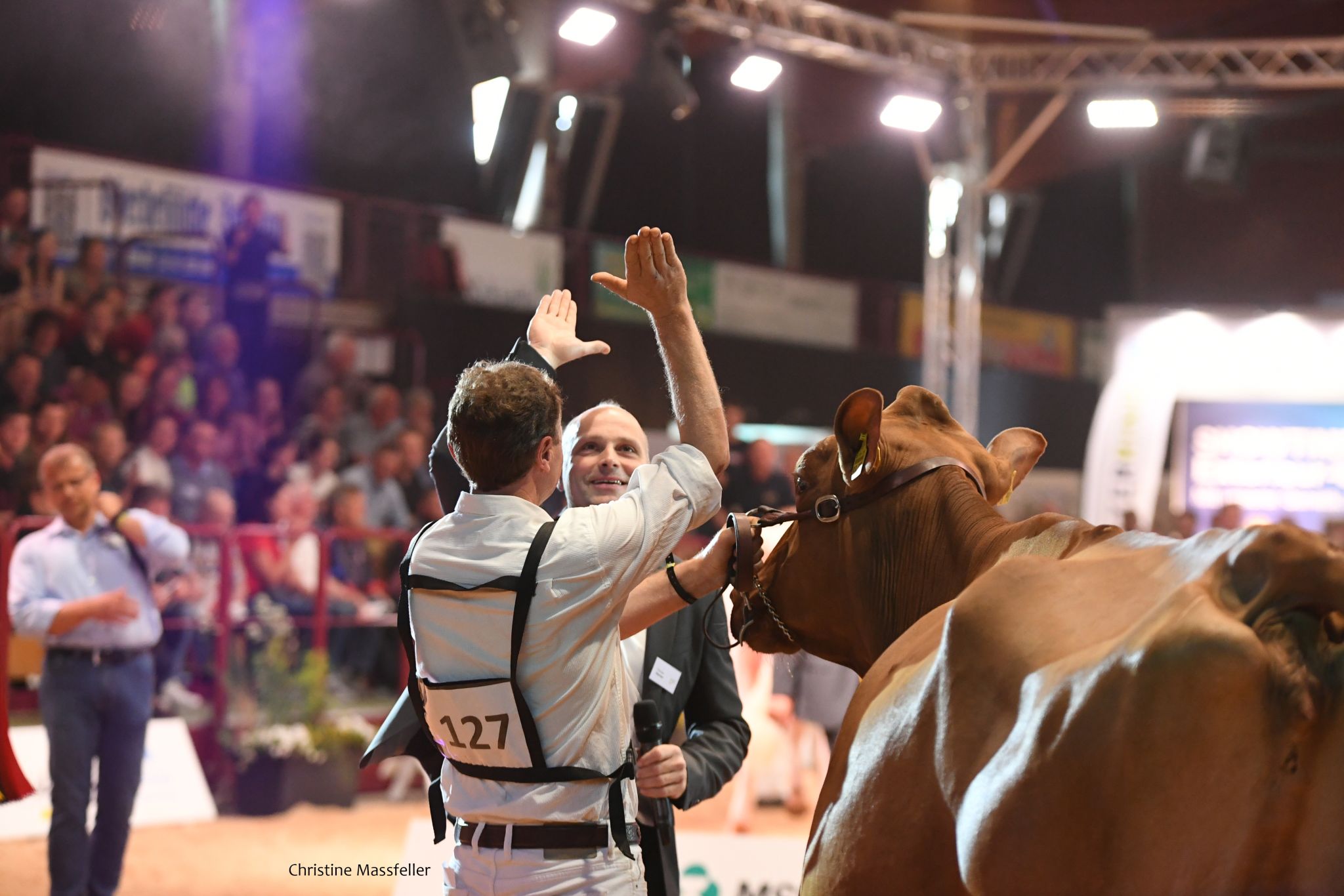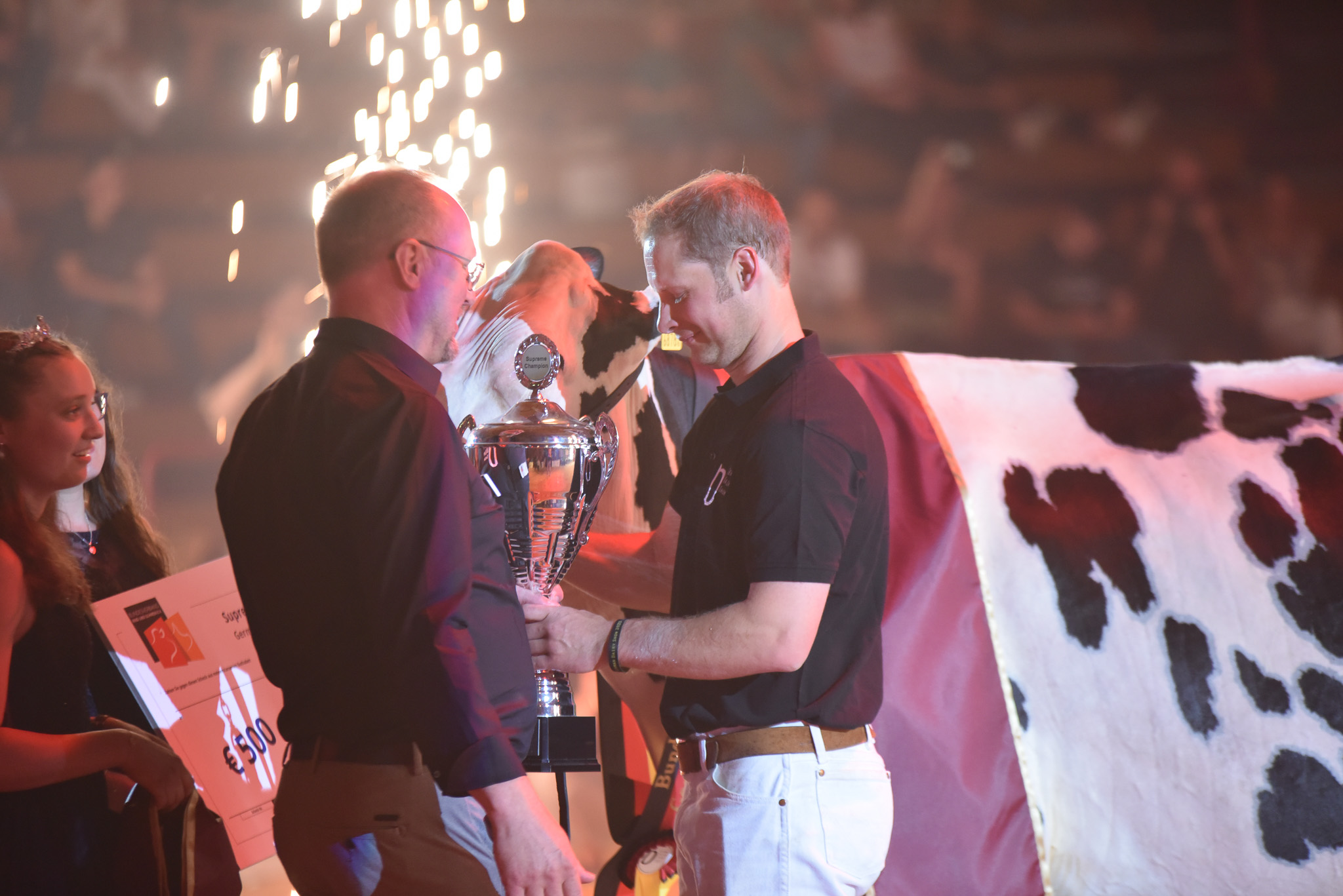 A very impressive laser show then set the scene for the final atmospheric highlight of the show: the selection of the all-breed Supreme Champion. The cows, which had been milked for their welfare, lined up in the ring decorated with sashes. In the light of a shower of sparks, Thomas Hannen announced on behalf of the three judges the selection of the overall Holstein champion cow, Elina, as Supreme Champion.