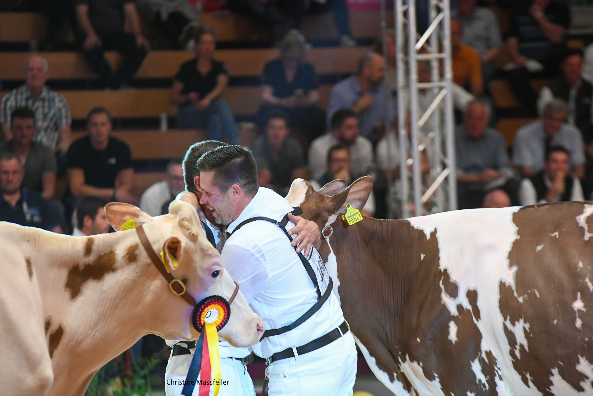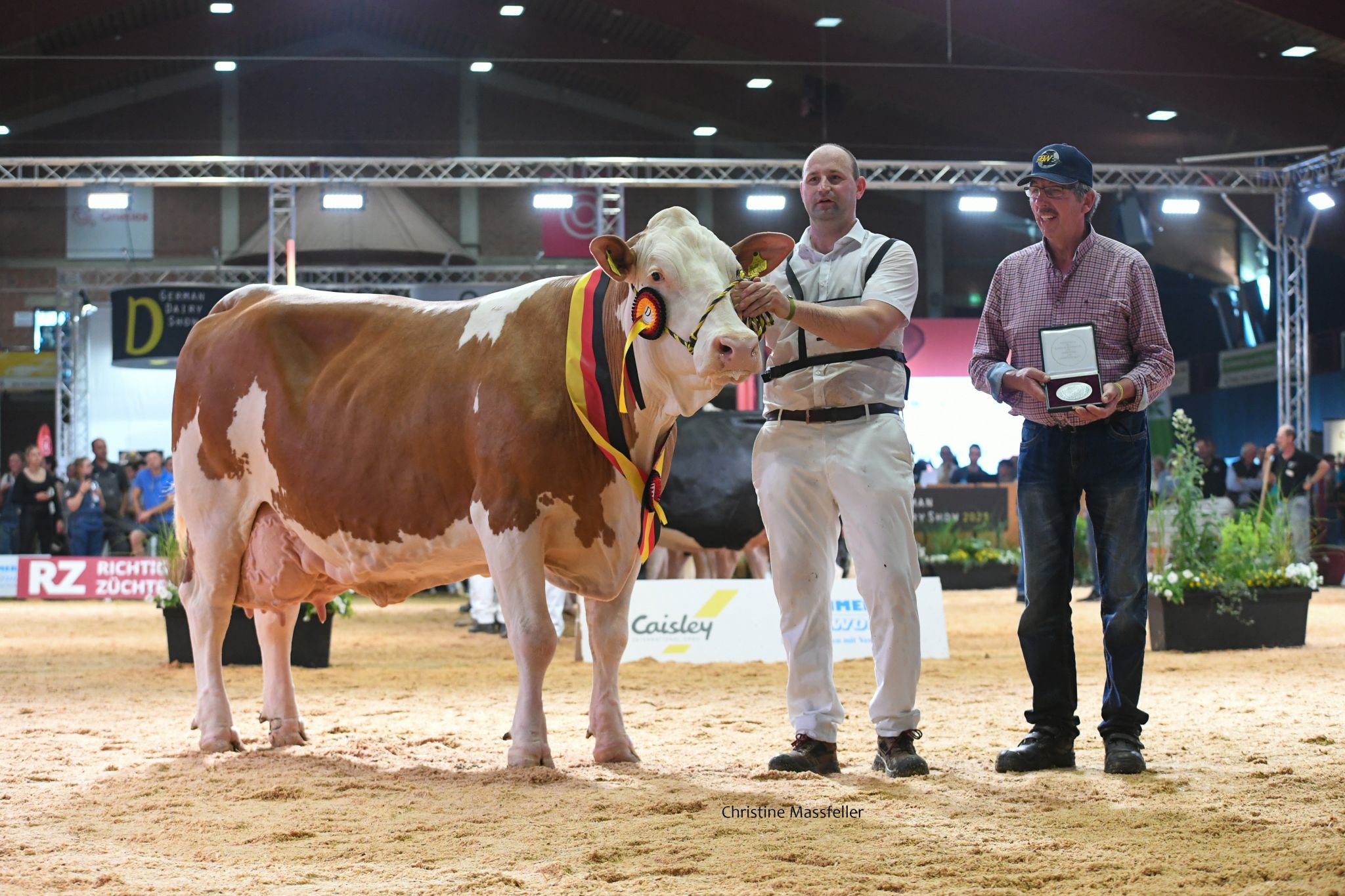 Cows from the second to the eighth lactation competed in the Brown Swiss breed. Although Peter Stückler was very pleased with the quality of the older cows, he found his cow of the day in the second lactation class. The elegant Fee (Volker x Himalaya), owned by Gerold and Dirk Ulrich, not only had a brilliant udder, but also top feet and legs. With these advantages she also won the Grand Champion title. Ballerina (Huvi x Biver), competing in the same class, was relegated to Reserve Champion. This strong cow had a lot of depth and a very good rump position.