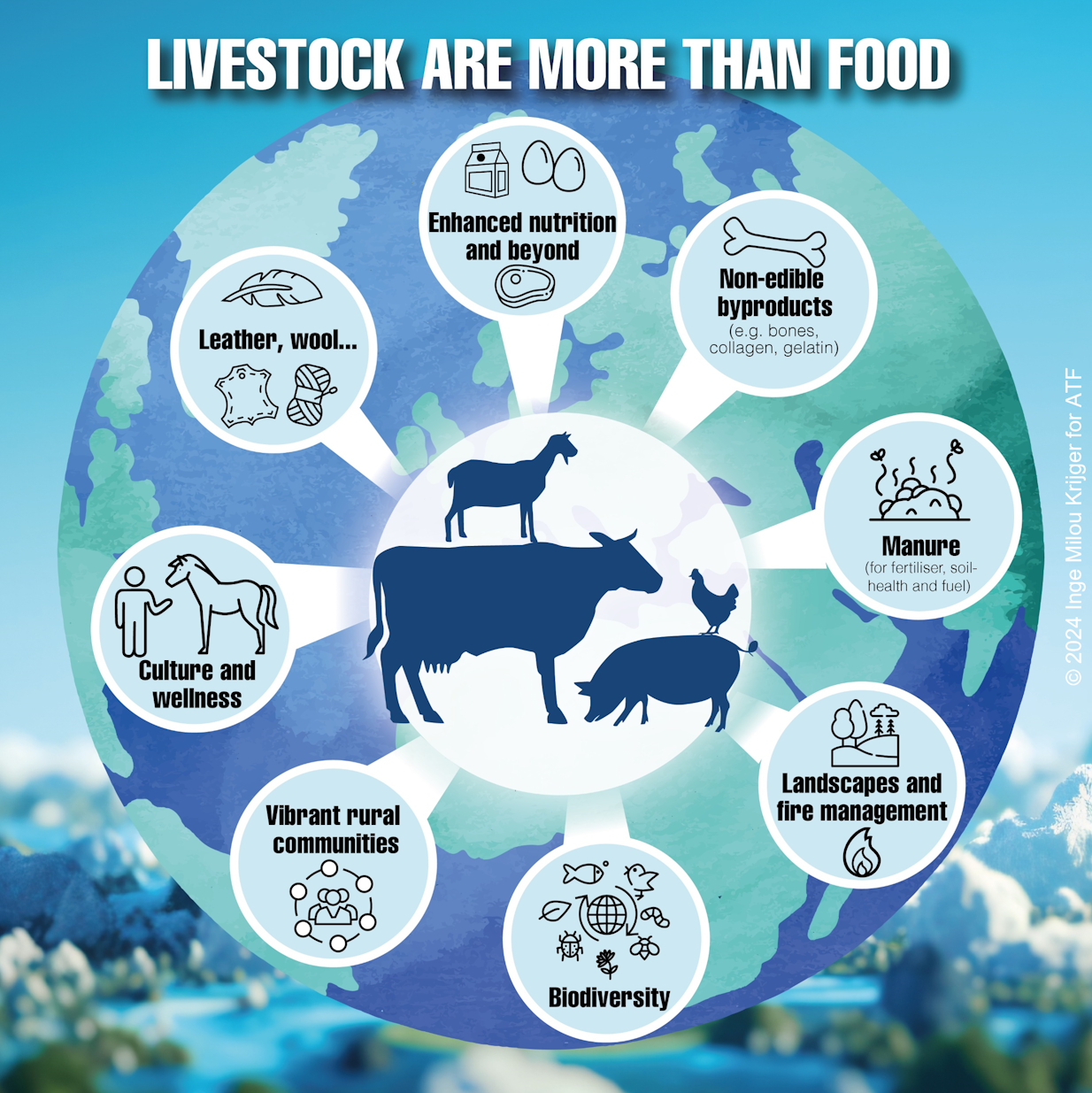 Im Kontext des Klimawandels ist die Messung des Einsatzes von Tierressourcen in allen seinen Facetten eine Schlüsselfrage. Dazu gehören die Verwendung von tierischen Produkten für den menschlichen Verzehr, aber auch viele andere Verwendungen: z.B. als Düngemittellieferant, als Rohstoff für umfangreiche Nebenprodukte und als Energielieferant, Erhalt der Kulturlandschaft, Sicherung des Einkommens und dem Schutz von Natur und Biodiversität.