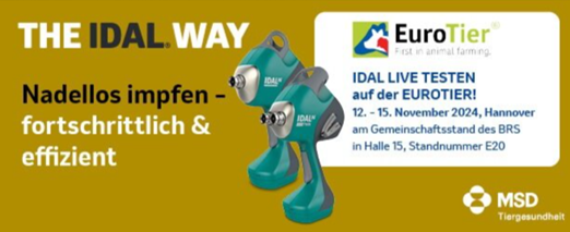 Meilenstein in der Schweinegesundheit: Erstmals ist es möglich, Ferkel in nur einem Arbeitsgang gegen die vier wichtigsten Krankheitserreger zu impfen: MSD Tiergesundheit hat die Zulassung für einen neuen intradermalen Kombi-Impfstoff zum Schutz gegen Circo und Myco erhalten. Mischbar mit dem Lawsonien- und gleichzeitig applizierbar mit dem PRRS- Impfstoff können Ferkel mit dem IDAL® Twin Gerät gegen die vier häufigsten Erreger in nur einem Arbeitsgang geschützt werden. Das ist sowohl tierfreundlicher und stressfreier und für den Landwirt arbeitswirtschaftlicher. Mehr dazu erfahren Sie an unserem Stand auf der EUROTIER: Gemeinschaftsstand des BRS in Halle 15, Standnummer 20.