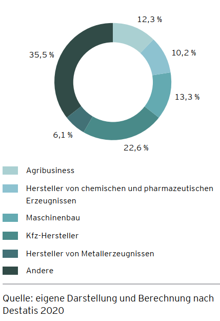 Das Agribusiness beschreibt alle vor- und nachgelagerten wirtschaftlichen Aktivitäten der Landwirtschaft. Mit einem Umsatz von rd. 237,8 Mrd. Euro (12,3 %) im Jahr 2019 folgte es als drittgrößter Wirtschaftszweig nach den Herstellern von Kraftwagen und Kraftwagenteilen mit einem Umsatz von 438,8 Mrd. Euro (22,6 %) und dem Maschinenbau mit einem Umsatz von 256,9 Mrd. Euro (13,3 %). Innerhalb de Agribusiness ist die Ernährungsindustrie mit einem Umsatz von 185,3 Mrd. Euro(0 77,8 %) die vorherrschende Branche.