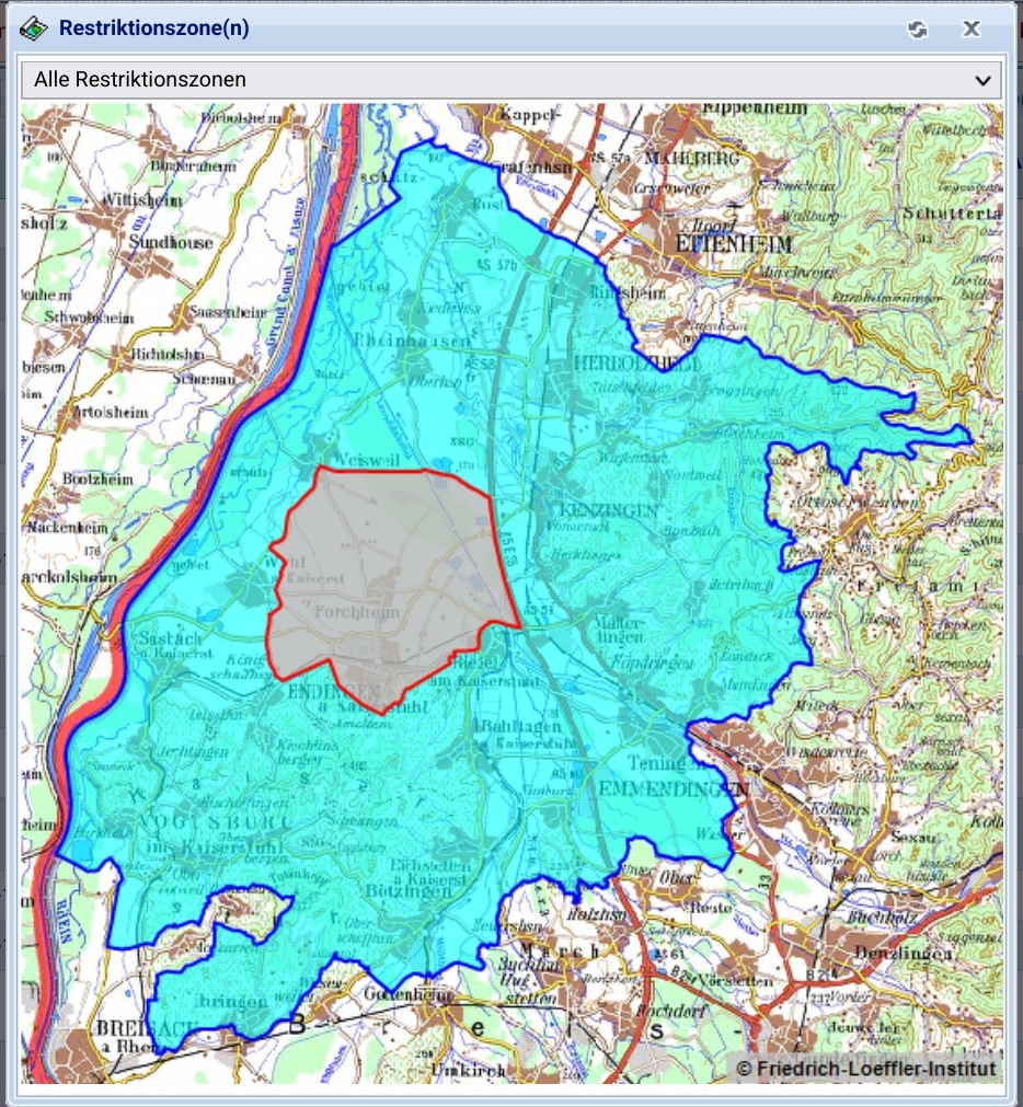 Laut Tierseucheninformationssystem des Bundes wurde bei einem Mastschwein in Emmendingen, Baden-Württemberg, die Afrikanische Schweinepest amtlich bestätigt. Eine Restriktionszone wurde eingerichtet.