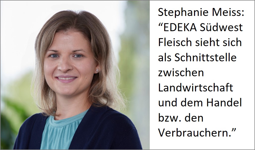 Die Tierschutzbeauftragte der EDEKA Südwest Fleisch in Rheinstetten, Stephanie Meiss, ist ein Bindeglied zwischen Lebensmitteleinzelhandel und Landwirtschaft. In ihrem Vortrag skizzierte sie die zukünftigen Anforderungen des Handels und der Verbraucher an Schweine- und Rindfleisch und sah das Unternehmen Edeka dabei in einem Spannungsfeld. Gegenüber den Landwirten möchte das Unternehmen ein verlässlicher Partner sein und eine garantierte Abnahme zu fairen Preisen gewährleisten. Die Wünsche und Anforderungen der Verbraucher, wie gute Qualität, Preiswürdigkeit, Transparenz sowie tiergerechte und regionale Tierhaltung in Einklang zu bringen, sind grundlegende Anliegen des Lebensmitteleinzelhandels. Gesetzliche Rahmenbedingungen, wie die Einführung der Haltungskennzeichnung, sind ebenfalls verpflichtend einzuhalten. EDEKA Süd-West Fleisch versteht sich dabei als Schnittstelle zwischen der grünen Seite
