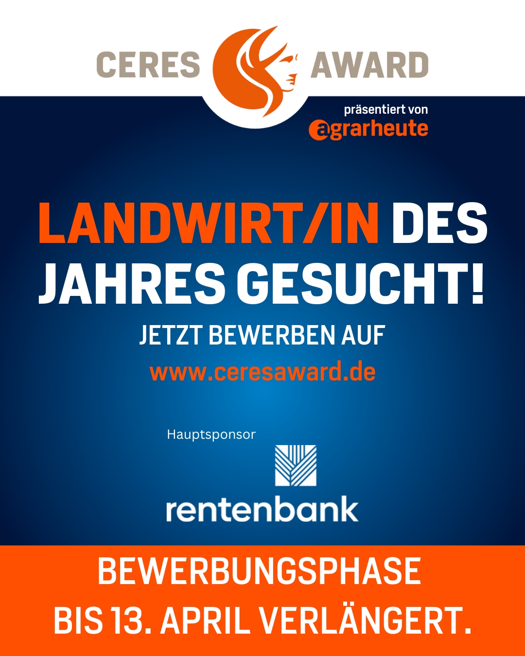 Die Bewerbungsphase für den CERES AWARD 2025 wurde bis zum 13. April 2025 verlängert. Landwirtinnen und Landwirte aus dem deutschsprachigen Raum haben nun zwei weitere Wochen Zeit, sich um den Titel Landwirt/in des Jahres 2025
