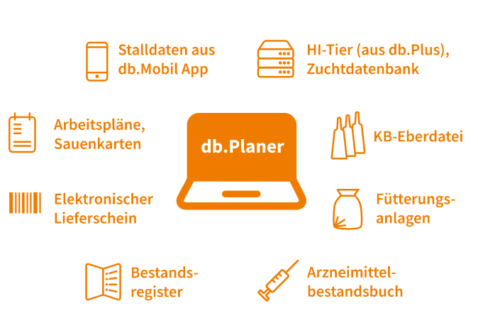 Ob Einzeltier oder gesamte Herde – mit dem db.Planer haben Sie Ihre Betriebsabläufe optimal im Blick. Die Integration der verschiedensten Daten erleichtert Ihre tägliche Arbeit enorm, erspart Ihnen lästige Eingaben, hilft Ihnen beim Meistern der rechtlichen Anforderungen und bietet Ihnen die Möglichkeit Schwachstellen früh zu erkennen und Abläufe zu optimieren. Wenn Sie bereits einen Sauenplaner benutzen und zum db.Planer wechseln möchten, kümmert man sich einmalig um die Datenübernahme in Ihren neuen db.Planer. Testen Sie jetzt 90 Tage kostenlos den marktführenden Sauenplaner. Der Datenübernahme-Service macht den Wechsel einfacher als Sie denken.