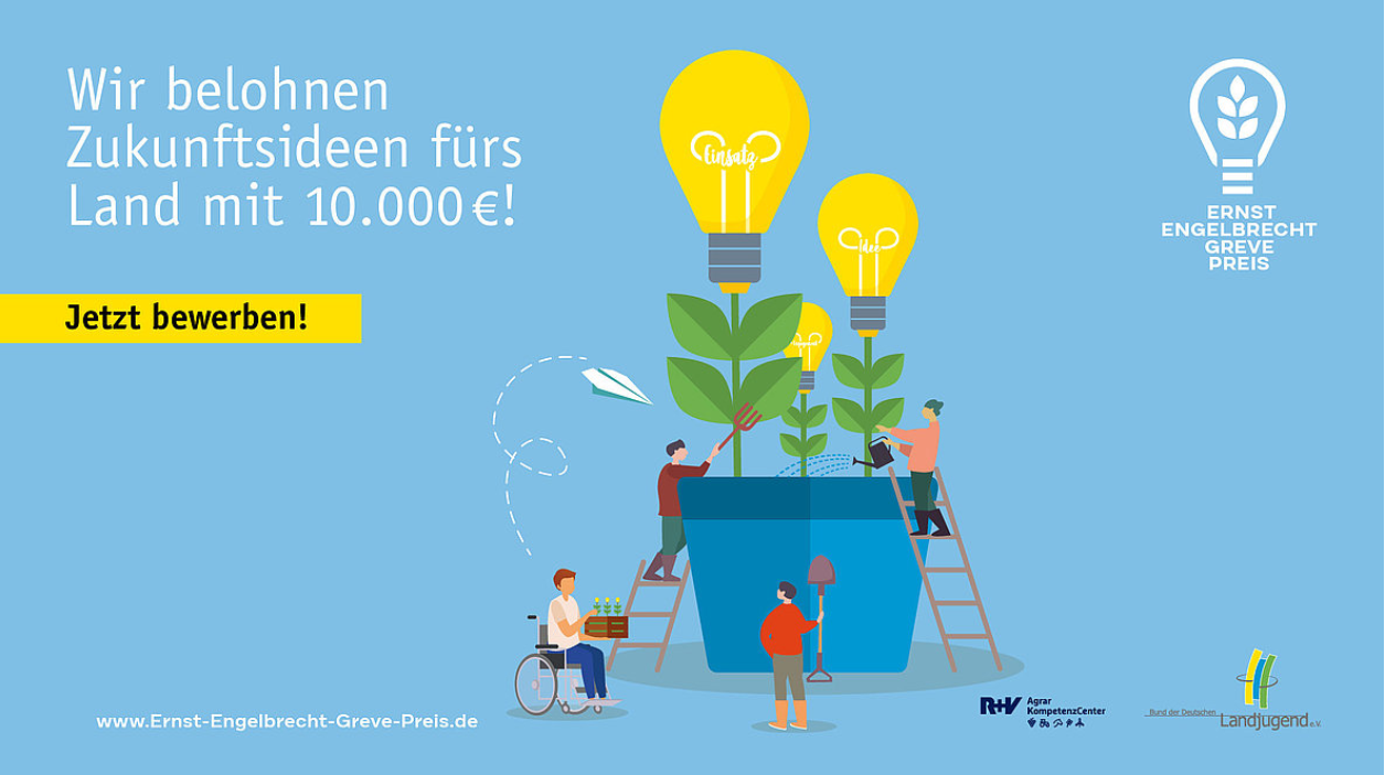 Der Ernst-Engelbrecht-Greve-Preis ist ein Geldpreis, der uneigennütziges Engagement fürs Land ins Rampenlicht holt und mit insgesamt 10.000 Euro belohnt. Damit wollen R+V Versicherung und der Bund der Deutschen Landjugend Initiativen und Projekte unterstützen, die Zusammenleben und Strukturen im ländlichen Raum verbessern. Bewerben können sich Gemeinschaften junger Menschen, egal ob zu zweit, zu dritt oder Organisationen, die sich für junge Menschen auf dem Land einsetzen. Und zwar bis zum 31. Oktober 2020 über unser Bewerbungsformular.