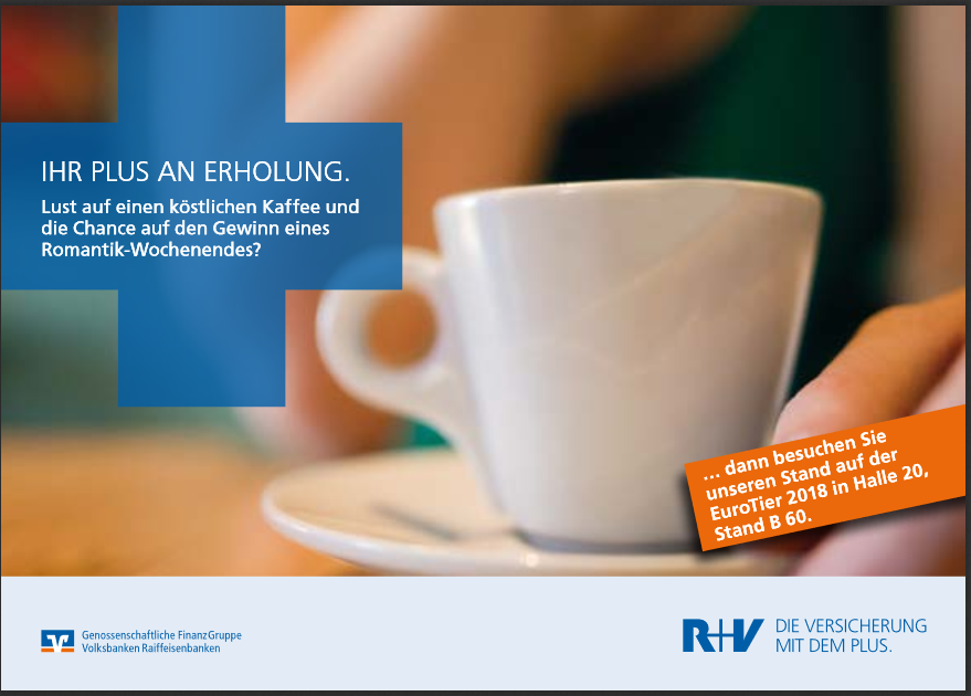 R+V lädt vom 13. – 16.11.2018 auf ihren Messestand mit einem Gutschein in Halle 20, Stand B 60. Für den Gutschein gibt es einen köstlichen Kaffee