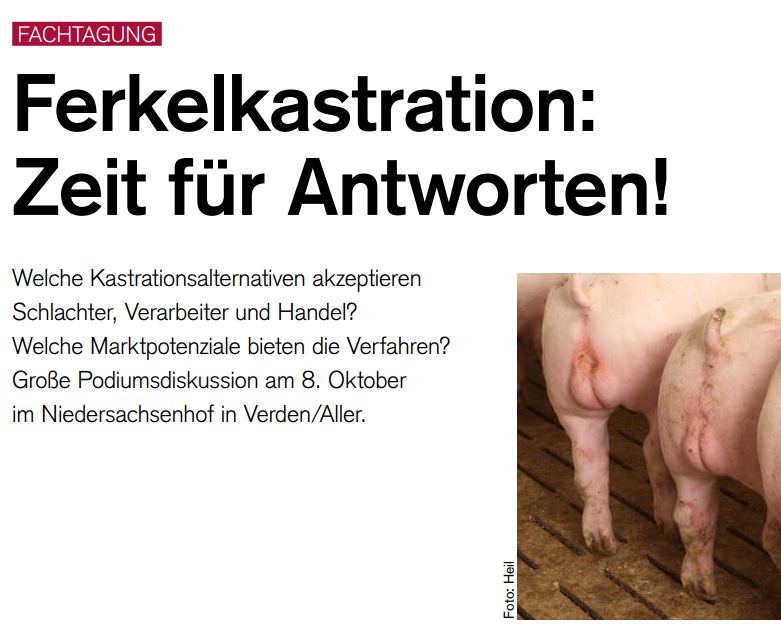 Fachtagung zur Ferkelkastration - Jetzt ist Zeit für Antworten! Anmeldungen nur noch bis 01.10. möglich