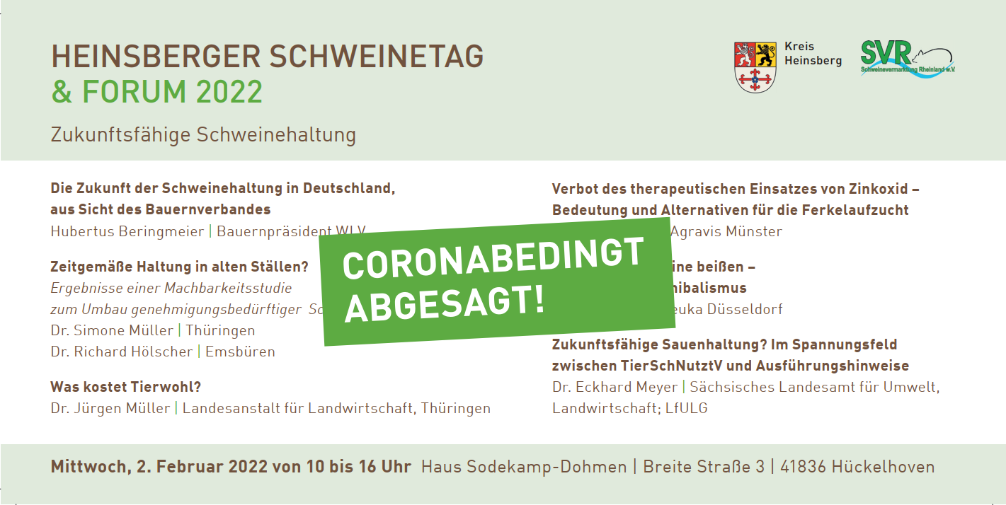 ABSAGE: Heinsberger Schweinetag & Forum 2022 am 02.02.2022