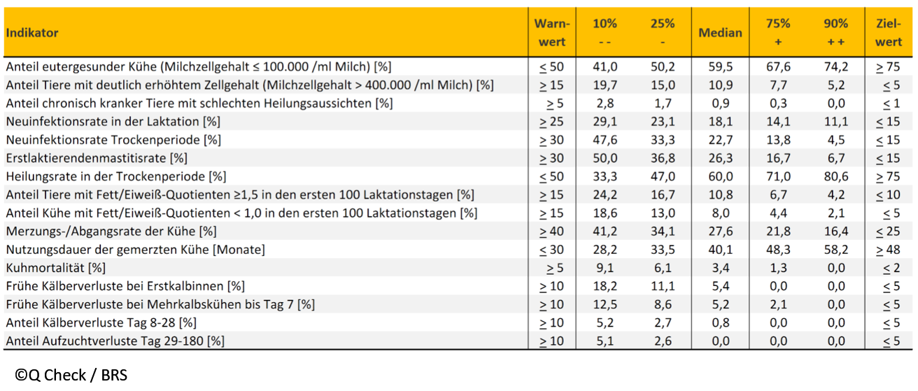 Neben den anonymisierten und aggregierten Informationen zur Eutergesundheit, zur Stoffwechselgesundheit und Kennzahlen zu Tierverlusten können in diesem Jahr nun erstmalig auch weitere Kennzahlen zu Kälber- und Aufzuchtverlusten vorgelegt werden. Mit der jährlichen Veröffentlichung der Q Check Indikatoren wird neben dem Status Quo auch die Entwicklung des Tierwohls im deutschen Milchviehsektor dokumentiert.