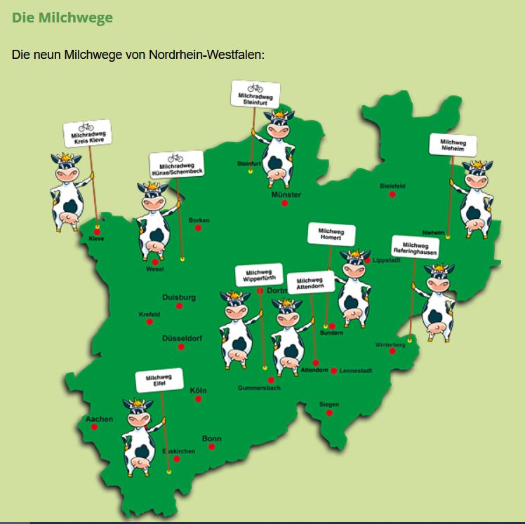 Es kann losgehen: Pünktlich zum Saisonstart gibt es in Attendorn ein neues touristisches Angebot für die Region. Am 24. Juni 2020 enthüllte Christian Pospischil, Bürgermeister der Hansestadt Attendorn, gemeinsam mit NRW-Milchmaskottchen Kuh Lotte die Starttafel des Milchwegs am Generationenplatz. "Die Errichtung eines Milchthemenweges wurde örtlich auf vielen Ebenen begrüßt. Der Milchweg Attendorn ist ein vier Kilometer langer Rundweg, der mit sechs Informationstafeln ausgestattet ist. Rund um die Themen regionale Milch- und Landwirtschaft sowie Milch und Käse gibt es interessante Einblicke. Eine Besonderheit auf dem Weg ist die Schaukäserei, wo der in der berühmten Atta-Höhle gereifte Käse hergestellt wird.