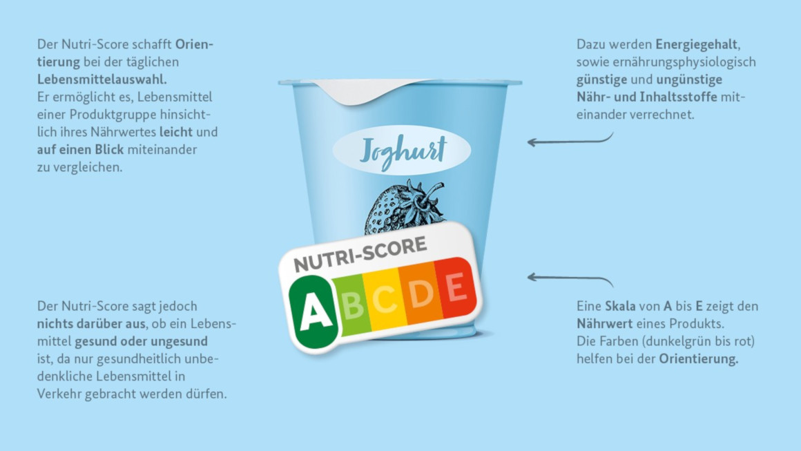 Der Nutri-Score gibt anhand einer 5-stufigen Farbskala von A bis E Auskunft über den Nährwert eines Lebensmittels. Dabei steht das grüne A für einen eher günstigen, das rote E für einen weniger günstigen Nährwert des jeweiligen Produkts und ermöglicht, Vergleiche innerhalb der jeweiligen Produktgruppe. Der Nutri-Score sagt jedoch nichts darüber aus, ob ein Lebenmittel gesund oder ungesund ist, da nur gesundheitlich unbedenkliche Lebensmittel in Verkehr gebracht werden dürfen.