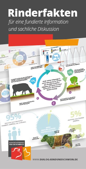 Informationen zu unterschiedlichen Themen rund um die Rinderhaltung gesammelt und grafisch leicht verständlich aufgearbeitet. Im Vordergrund standen dabei Vorwürfe und Mythen, die einem Faktencheck unterzogen wurden. Die Grafiken und Informationen zeigen, dass viele Meldungen bei genauerer Betrachtung nicht haltbar sind bzw. eine differenzierte Betrachtung erfordern. Die insgesamt 54 Grafiken und 23 Facts sind auf der neu erstellten Internetseite www.dialog-rindundschwein.de zu finden, ebenso die entsprechenden Informationen zum Thema Schwein, welche bereits zuvor im Rahmen des Projektes Schweinefakten