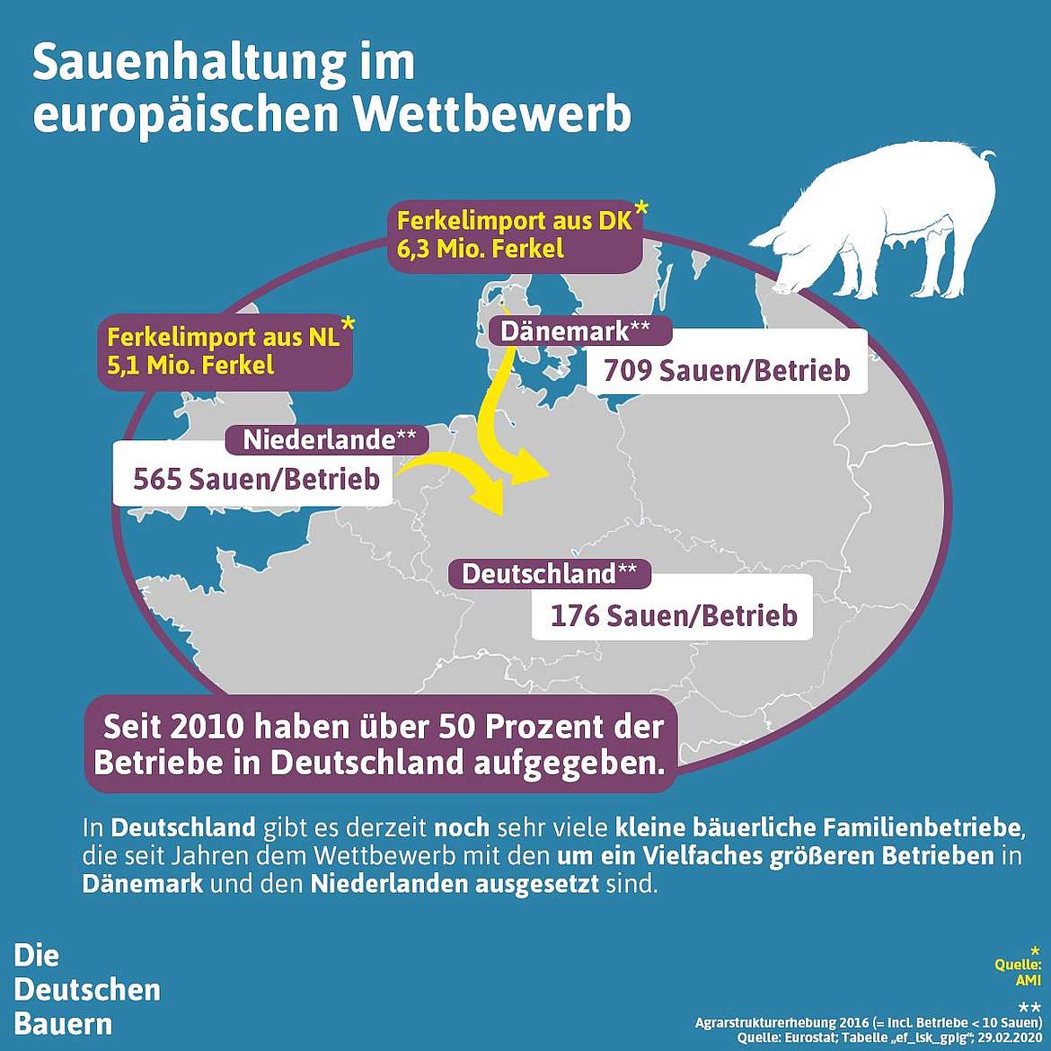 Der Deutsche Bauernverband appellierte an die Staatssekretäre der Bundesländer, anlässlich der Besprechung zur Änderung der Tierschutz-Nutztierhaltungsverordnung, die Sauenhalter in Deutschland zu unterstützen. Der Generalsekretär des Deutschen Bauernverbandes, Bernhard Krüsken, fordert eine Änderung der Verordnung mit Augenmaß: Die Sauenhaltung muss auch in Deutschland eine Zukunft haben. Dieser Zweig der Branche darf nicht weiter ins Ausland verlagert werden. Ohne praktikable Regelungen, Erleichterungen beim Bau- und Umweltrecht, ausreichende Übergangsfristen und finanzielle Förderung werden die Betriebe in Deutschland keine Chance im europäischen Wettbewerb haben.