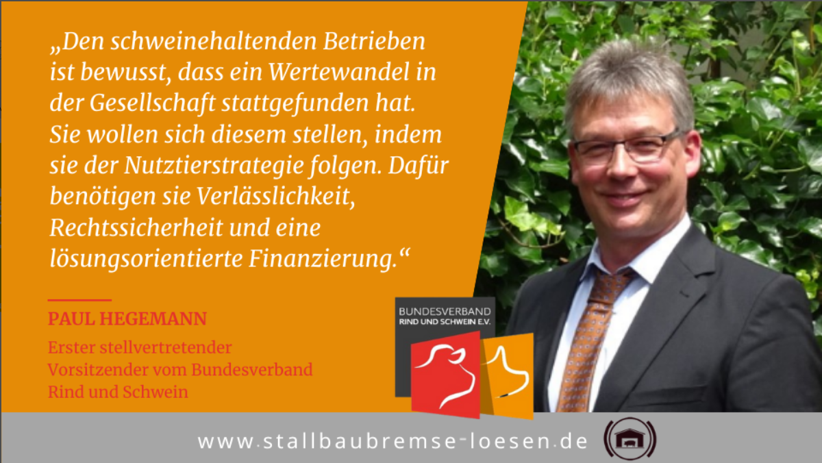 Politik, Verbraucher, Schweinehalter – alle sind sich einig: Wir wollen mehr Tierwohl! Um das zu erreichen, müssen die Ställe umgebaut oder erneuert werden. Aber wie genau sollen die Tierwohlställe aussehen? Mit immer neuen Vorstellungen aus der Politik, bekommen die Schweinehalter nicht die notwenige Planungssicherheit. Schlimmer noch – bestehende Gesetze machen den Umbau zu mehr Tierwohl nahezu unmöglich. Wie sollen zum Beispiel Ausläufe für die Tiere geschaffen werden, wenn das Emissionsrecht oder der Seuchenschutz dies nicht zulassen? Die Schweinehalter sind willens in Tierwohl zu investieren. Die zuständigen Genehmigungsbehörden stehen aber auf der Bremse, weil sie durch gegenläufige Rechtsvorhaben die Bauanträge ablehnen.