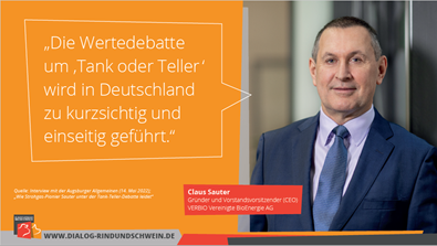 hat den Vorstandsvorsitzenden Claus Sauter zu den Folgen der Teller-Tank-Debatte interviewt, die nach Beginn des Ukrainekriegs u.a. von NGOs und Politik geführt wird. Eine Scheindebatte, die dem Unternehmen massiv schadet. Der Unternehmen zeigt im Interview fachliche Zusammenhänge auf, die in der politischen Debatte zu kurz kommen. Der Biokraftstoff-Produzent informiert, dass er im Grunde … ein Entsorgungsbetrieb für landwirtschaftliche Abfälle