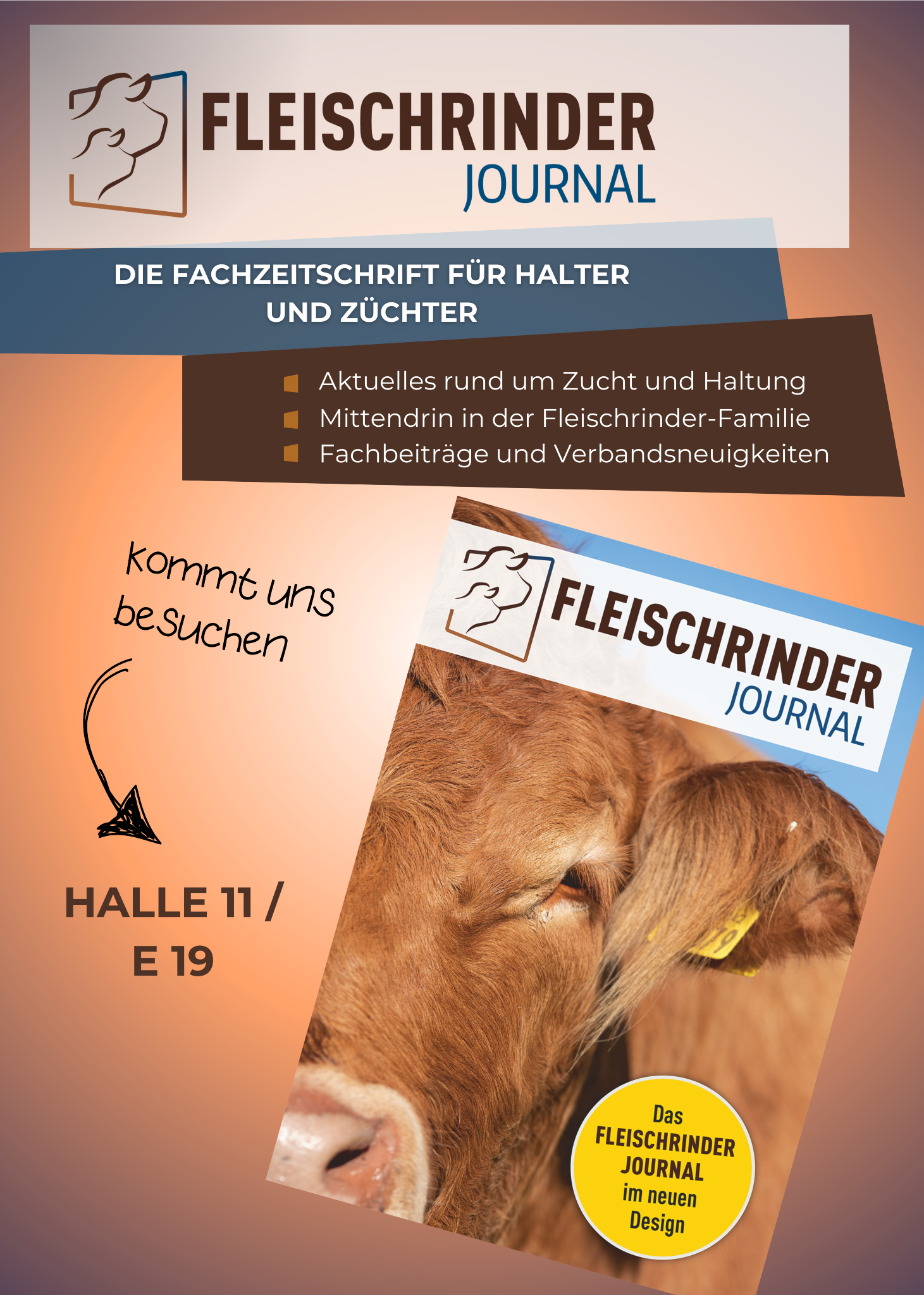 Der BRS präsentiert exklusiv das neue FleischrinderJournal! 🎉 Seien Sie dabei und sichern Sie sich Ihr Exemplar mit neuer Auflage in 2025 – nur auf der Messe mit exklusivem Rabatt erhältlich.