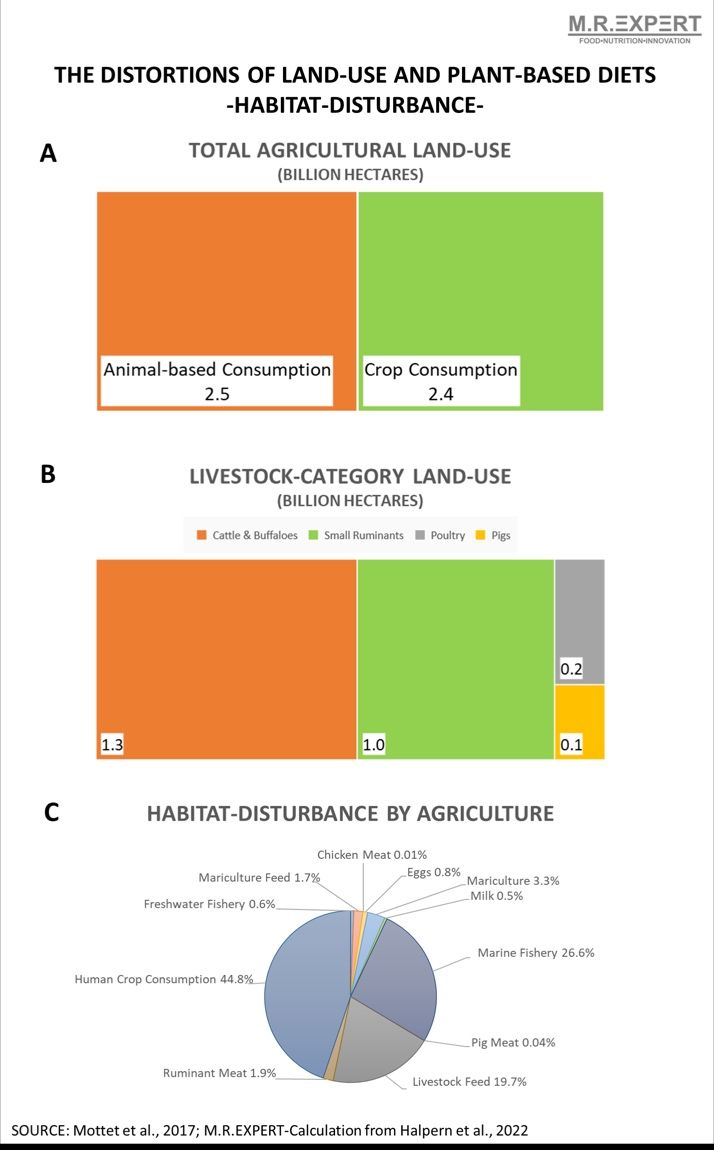 Tatsache ist, dass ein wesentlicher Faktor für den Verlust an Biodiversität die Belegung von Landflächen für die Erzeugung von pflanzlichen und tierischen Lebensmitteln ist, weil dadurch natürlich gewachsene Habitate eingeschränkt werden. Darüber hinaus kann der Einsatz von Pflanzenschutzmitteln, Überdüngung und Bodenbearbeitung zu weiteren Habitat-Störungen führen.