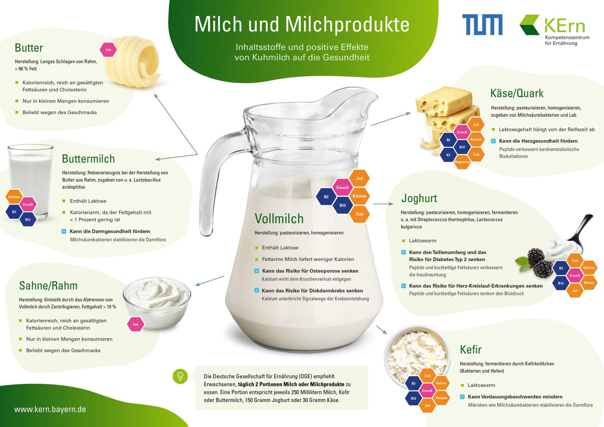 Es gibt nur wenige Lebensmittel, die so häufig und ausführlich geprüft wurden wie die Kuhmilch. Die Daten zeigen aber bis heute nicht, dass Milch und Milchprodukte grundsätzlich ungesund sind oder Menschen schaden. Eher ist das Gegenteil der Fall. Dazu kommt: In Deutschland empfiehlt die Deutsche Gesellschaft für Ernährung (DGE) den Verzehr von 500 Gramm Milch und Milchprodukten am Tag. Für diese Menge sind keine schädlichen, wohl aber günstige Effekte wissenschaftlich bewiesen.